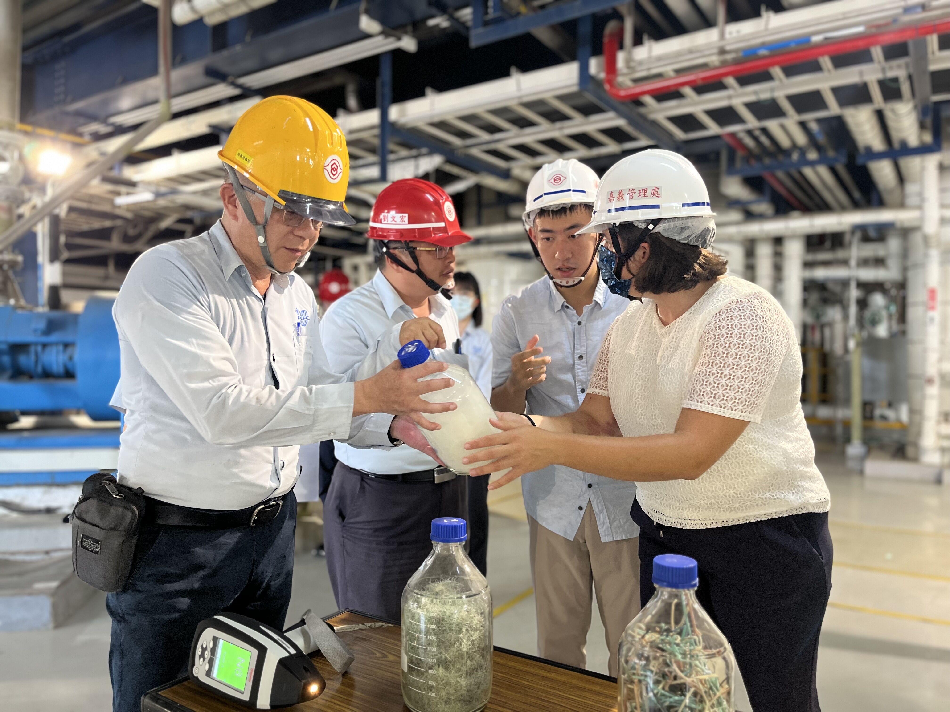 圖3 美國夏威夷太平洋大學海廢研究中心微型塑膠計畫主任瑪法達博士(Dr. Mafalda)參訪台灣化學纖維股份有限公司體驗漁網回收再利用流程